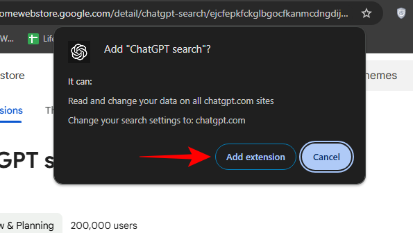 • You can also get the ChatGPT Search Chrome extension to make ChatGPT your default search engine.