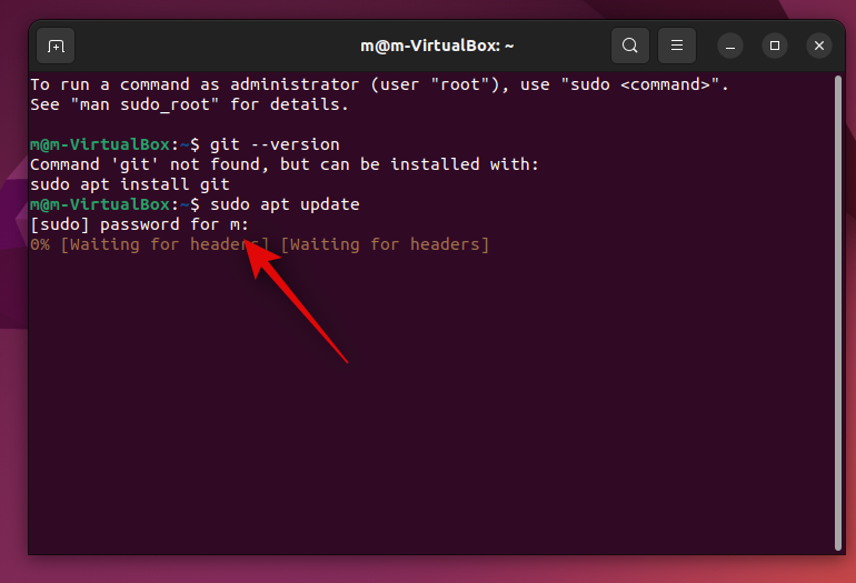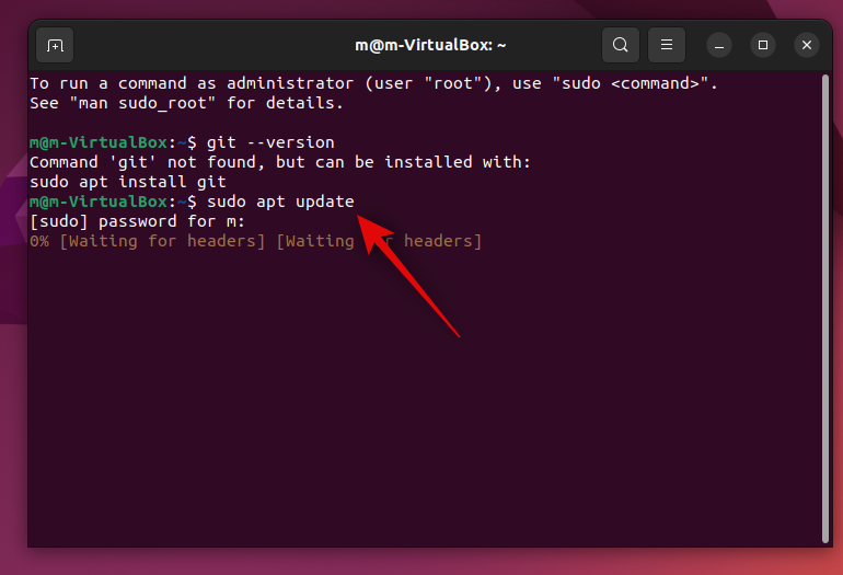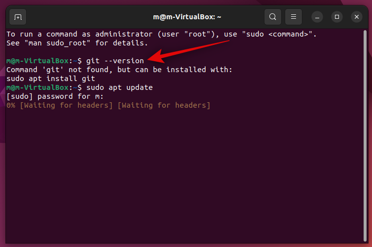 If you’re informed of the relevant version number then Git is already installed. However, if you get a similar message to the one below, then you can use the following command to first install updates.