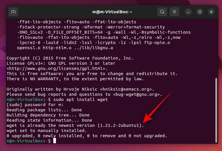 If Wget is already installed then you will be shown information about it, else you can use the command below to install it on your PC.