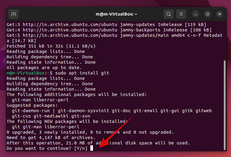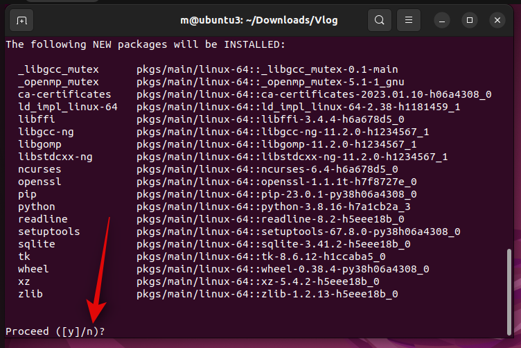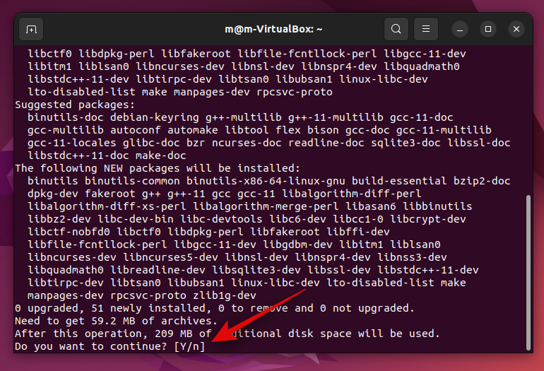 Your OS will now ask for permission to install the necessary dependencies. Type y and press Enter.