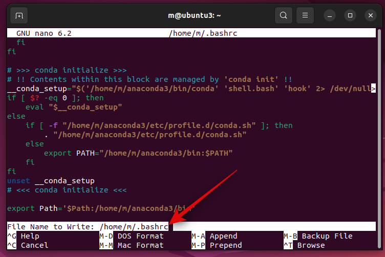 Once you’re done, press Ctrl + O on your keyboard. Press Enter once the default file path shows up.