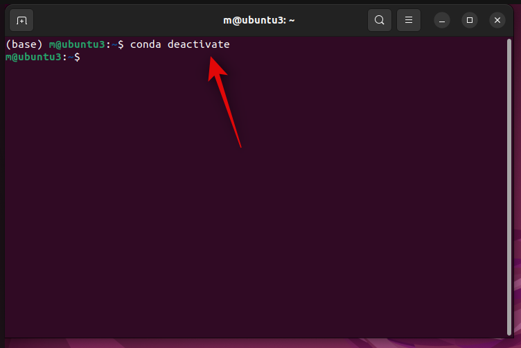 Open Terminal on your PC using the Ctrl + Alt + T keyboard shortcut. Once open, use the following command to deactivate Anaconda temporarily.