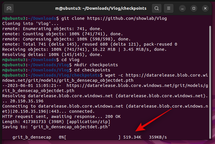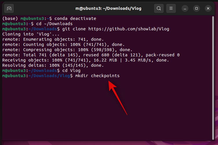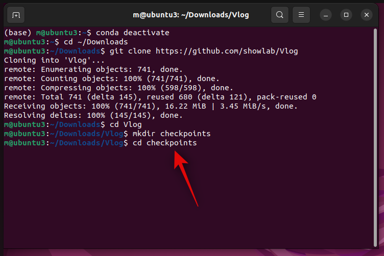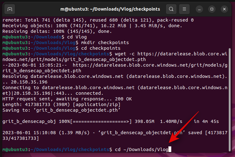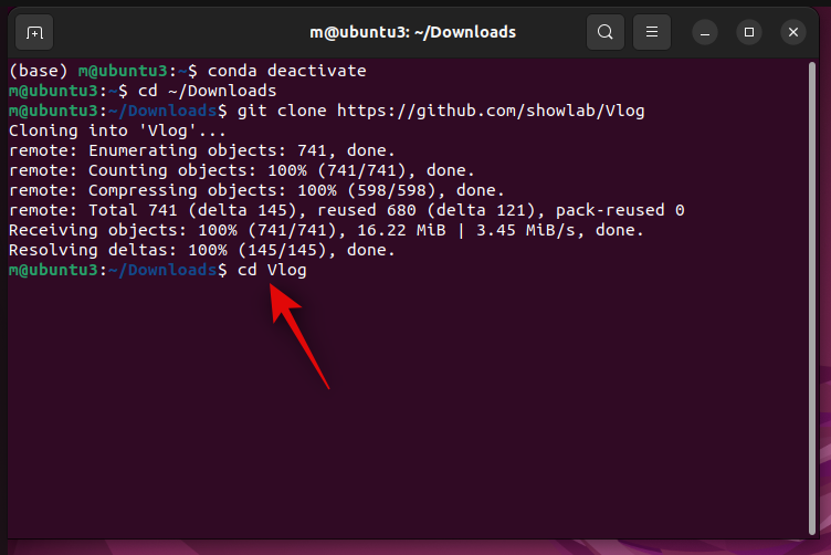Once the process has been completed, use the following command to go to the Vlog directory in your Downloads folder again.