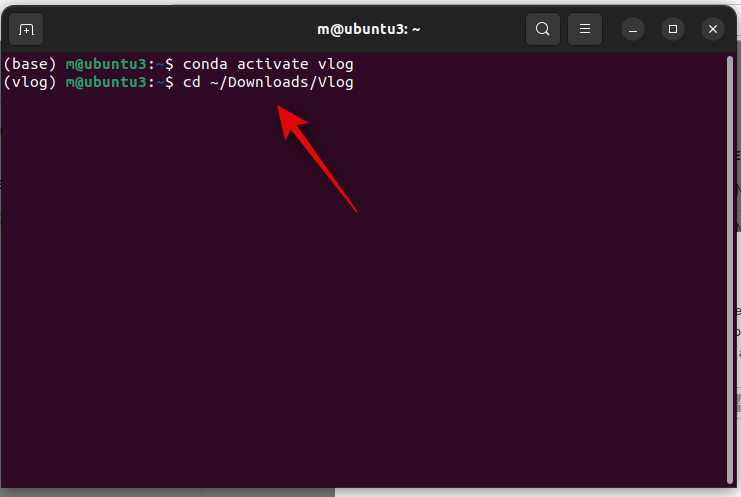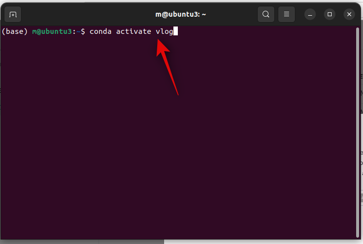 Once copied, open the Terminal by pressing Ctrl + Alt + T on your keyboard. Once open, use the following command to activate the Vlog environment we created in the previous step.