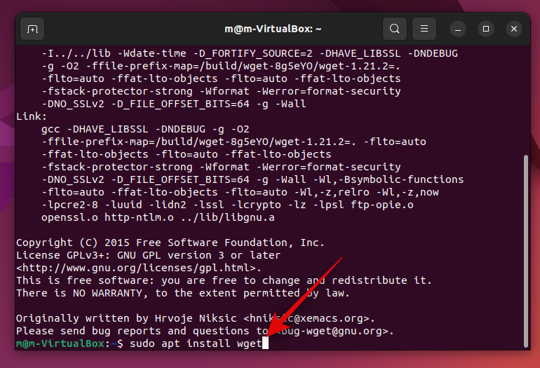 Open Terminal on your PC. If you’re on Ubuntu, you can do so by pressing Ctrl + Alt + T on your keyboard. Once open, use the following command to check if Wget is already installed on your PC.