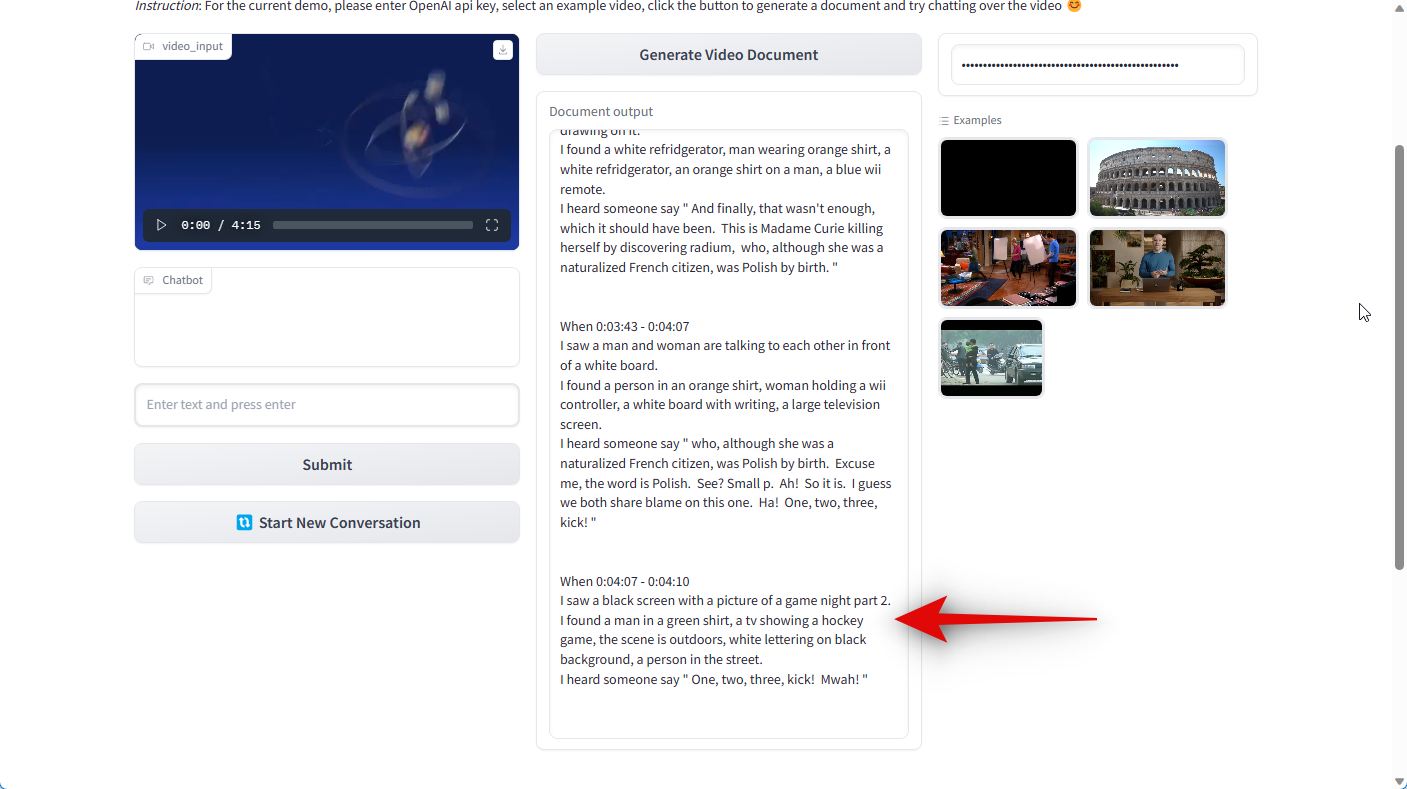 A document will now be generated for your video and automatically fed to ChatGPT.