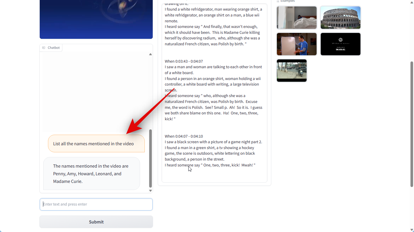 Once done, type your query under Chatbot and press Enter. As we used the Big Bang Theory video for this guide, let’s see if ChatGPT can help us identify the names mentioned in this video. So we ask the following question.
