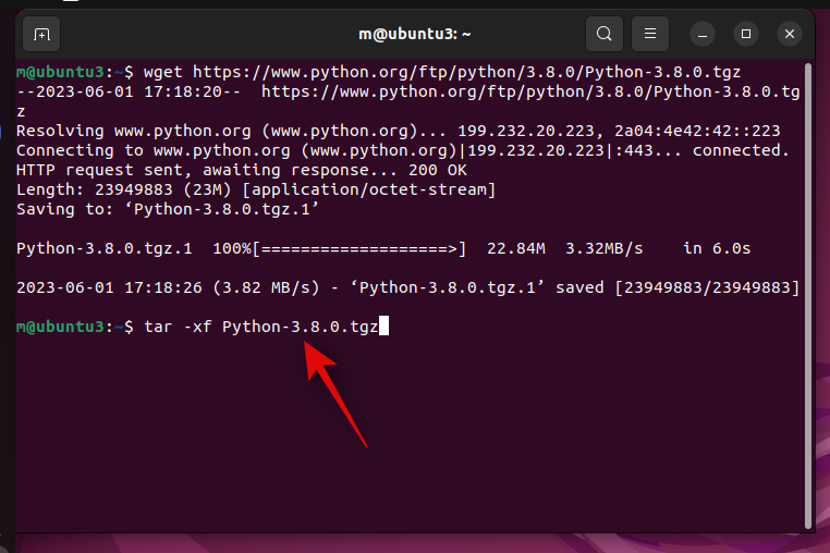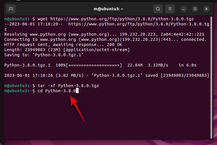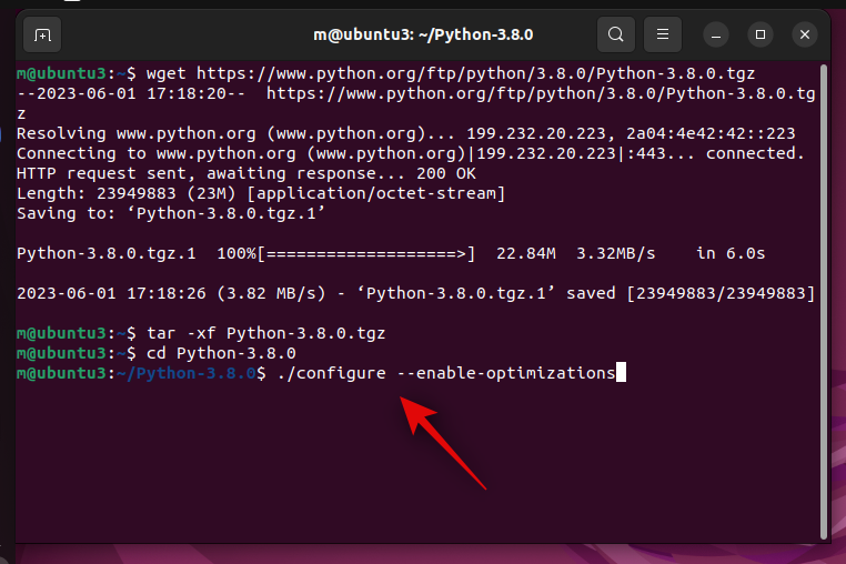 We now need to install Python 3.8. Wget will help us with this process. Follow these steps to install Python 3.8.
