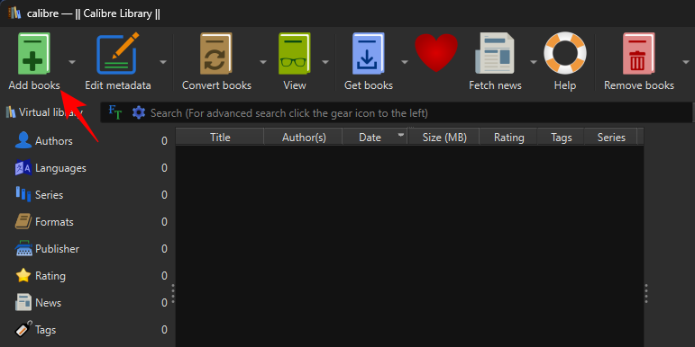 Alternatively, click on Add books.