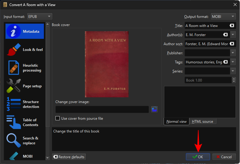 Once the conversion job finishes, your EPUB file will be converted to the MOBI format. You will also see the MOBI appear next to the “Formats” field.
