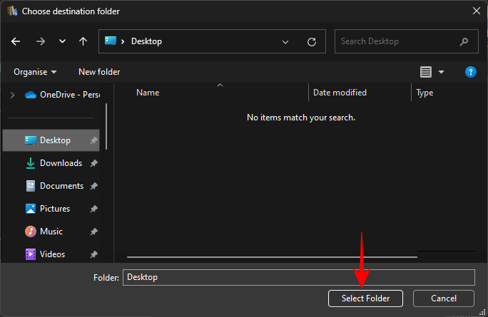 Select a location to save the files.