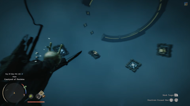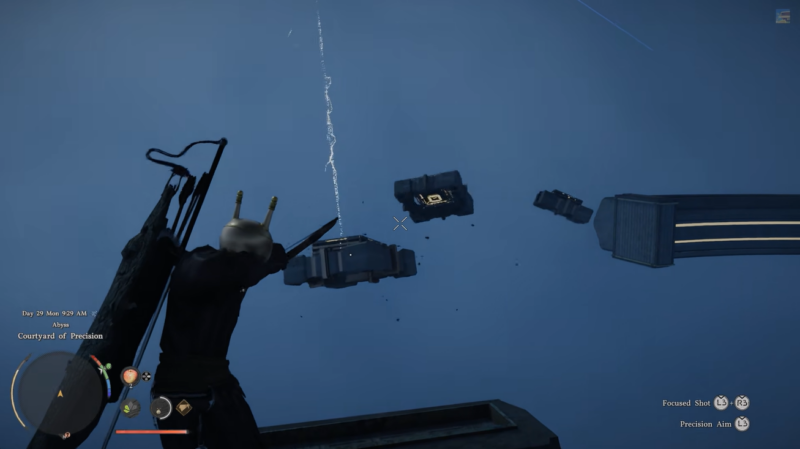 The Courtyard of Precision puzzle stands out as a true skill check in Crimson Desert’s Abyss content. It combines aiming accuracy, spatial awareness, and aerial control into a single cohesive challenge. Once you understand the rhythm—activate, reposition, ascend, repeat—the puzzle becomes far more manageable. Completing it not only rewards you with powerful Lightning abilities but also reinforces core mechanics you’ll need for later Abyss encounters.