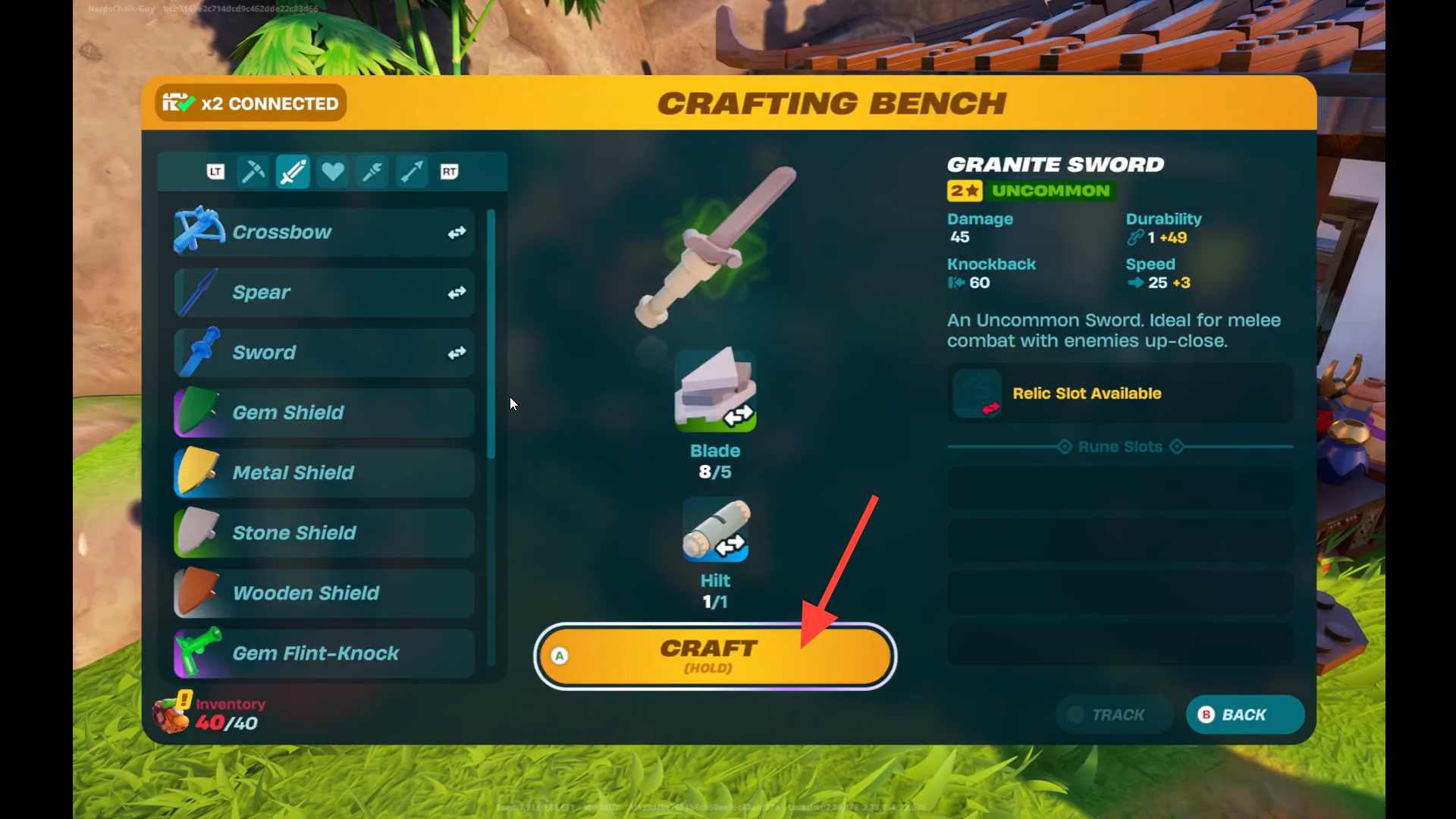 The Crafting Bench gives you complete freedom to choose and experiment with your items and creativity for your weapons. With some minimum requirements, you can basically craft any type of sword.