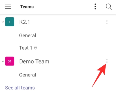 Deleting a Team on mobile is even more straightforward than doing so on a PC. A couple of taps and you can get rid of the Team for good. Start by firing up the app and logging in with your credentials. Now, go to the ‘Teams’ tab, located at the bottom of your screen, and tap on the ellipsis/vertical ellipsis button located right next to the Team you want to delete.