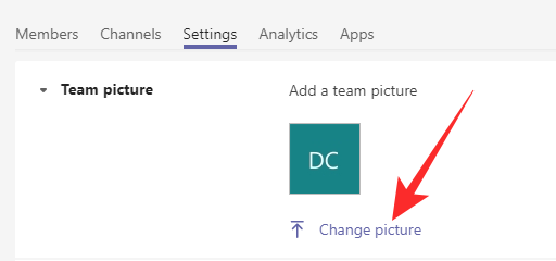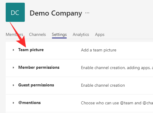 By default, it’ll take you to the ‘Members’ tab. You’ll need to go to the ‘Settings’ tab on the right. Now, expand the section saying ‘Add a Team picture.’