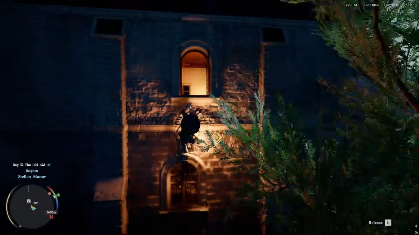 Approach Stellen Manor and locate an accessible window to sneak inside. This is your primary entry point, as the main doors are not usable during this sequence.