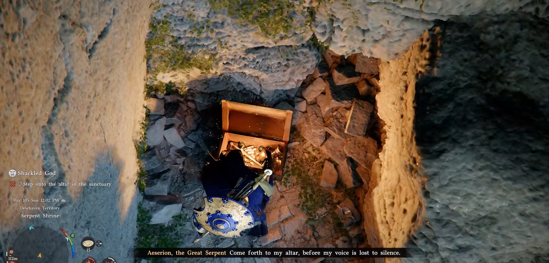 Progress to main quest Chapter 4 for the Kuku Pot. Return to Serpent Shrine, spot pentagon-shaped scale icons on the ground.