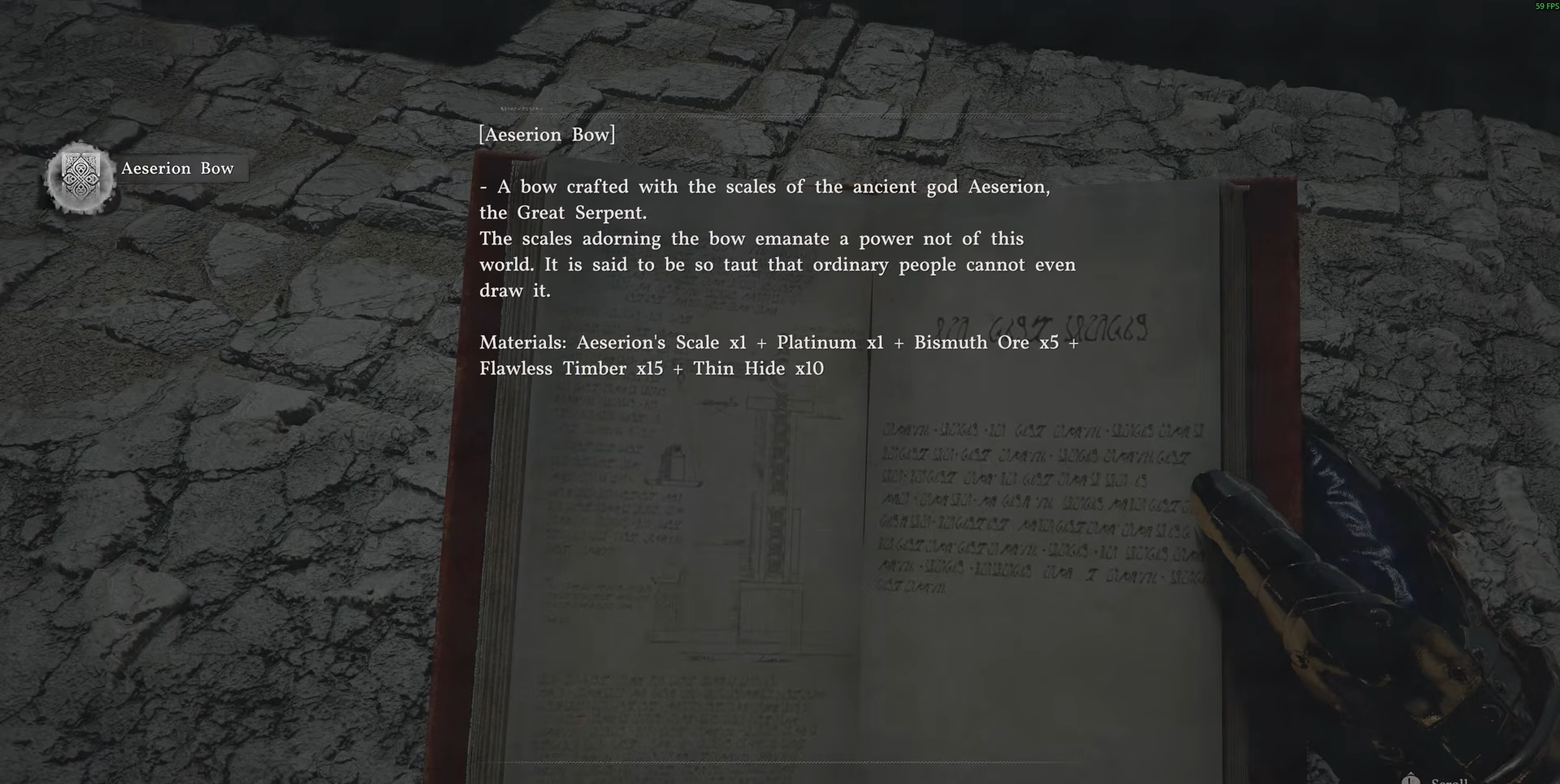 Learn all pages to unlock recipes for Aeserion Bow, Sword, Dagger, Mace, Halberd, Greataxe, Spear, Longsword, Warhammer, and Greathammer.