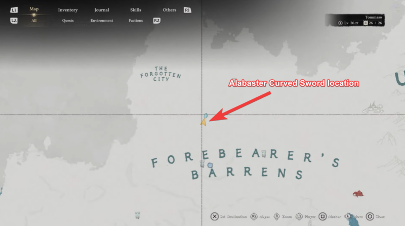You will need to navigate to the area just above Forebearer’s Barren on the map. Align yourself slightly east of the text label for Forebearer’s Barren, and you should start noticing unusual terrain formations.