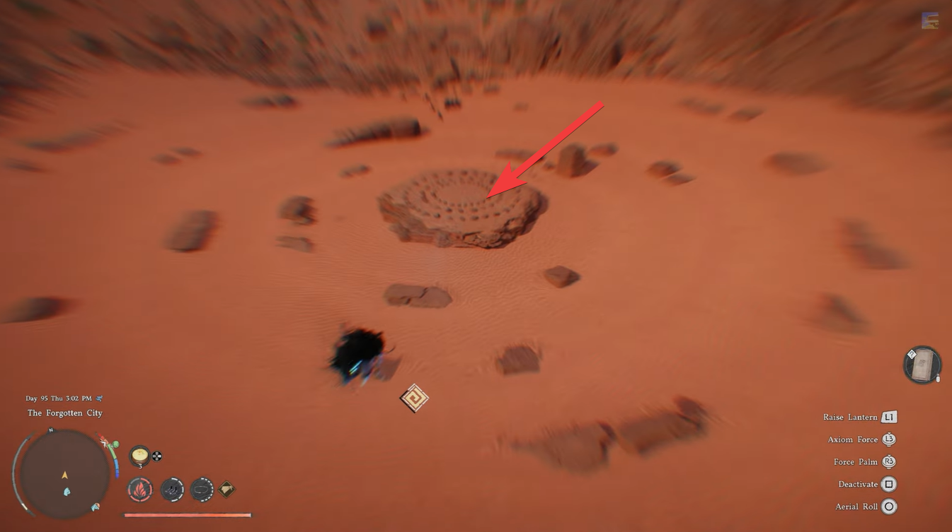 - Located near Forebearer’s Barren, inside a quicksand puzzle zone