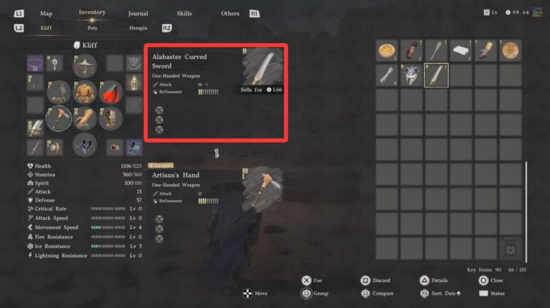 The Alabaster Curved Sword is designed to be a versatile one-handed weapon that fits multiple playstyles. Its balanced attack value makes it ideal if you prefer agility over heavy damage builds.