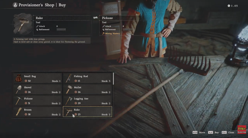 Invest in utility tools like the Rake or Broom when needed for specific quests or interactions. These tools often tie into side content.