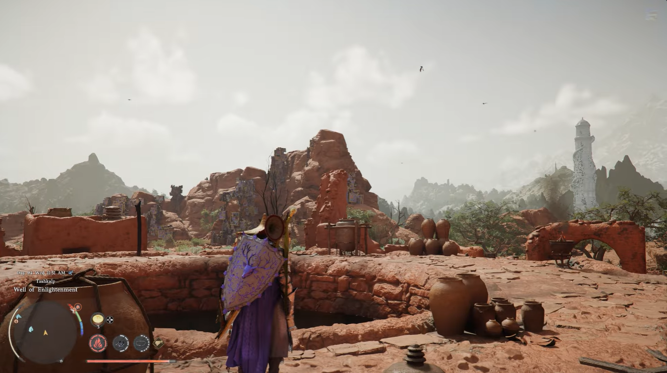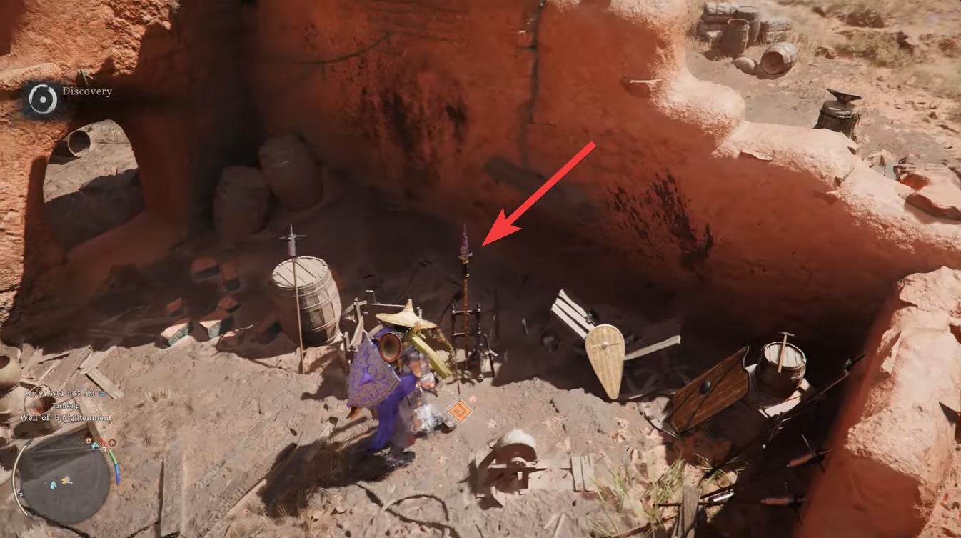 Once you arrive at the Well of Enlightenment, your goal is not the main open area but a smaller, enclosed structure nearby. This “boundary-ed room” is easy to overlook because it blends into the environment and doesn’t immediately stand out as loot-worthy.