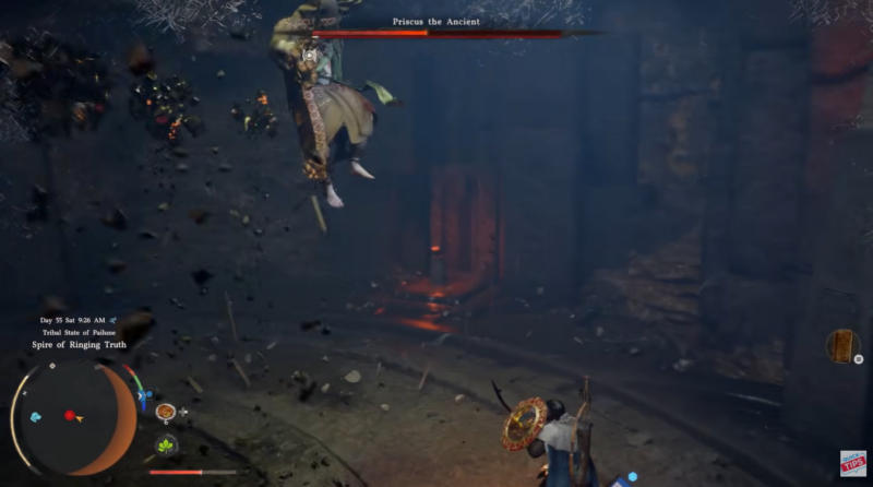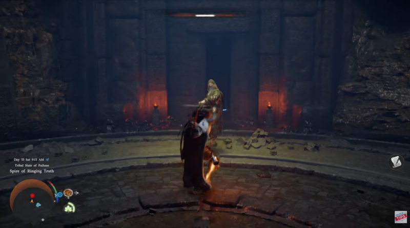 The boss resides within the Spire of Ringing Truth, located west of Pailune, a region known for its vertical design and high-risk encounters. This area is not accessible early and requires meaningful story advancement.