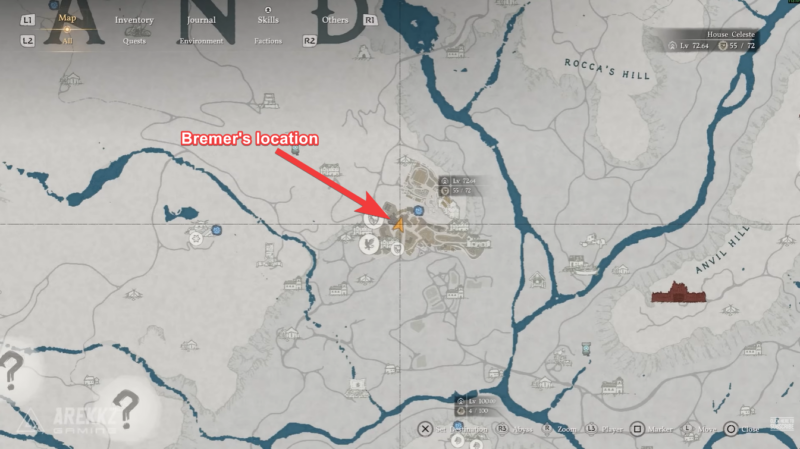 When you first start looking for Bremer, your best point of reference is Hernand Town, one of the more active hubs in the game. You should head toward the Hernand Tavern area, then locate the large tree nearby, which acts as a visual anchor for several NPCs.