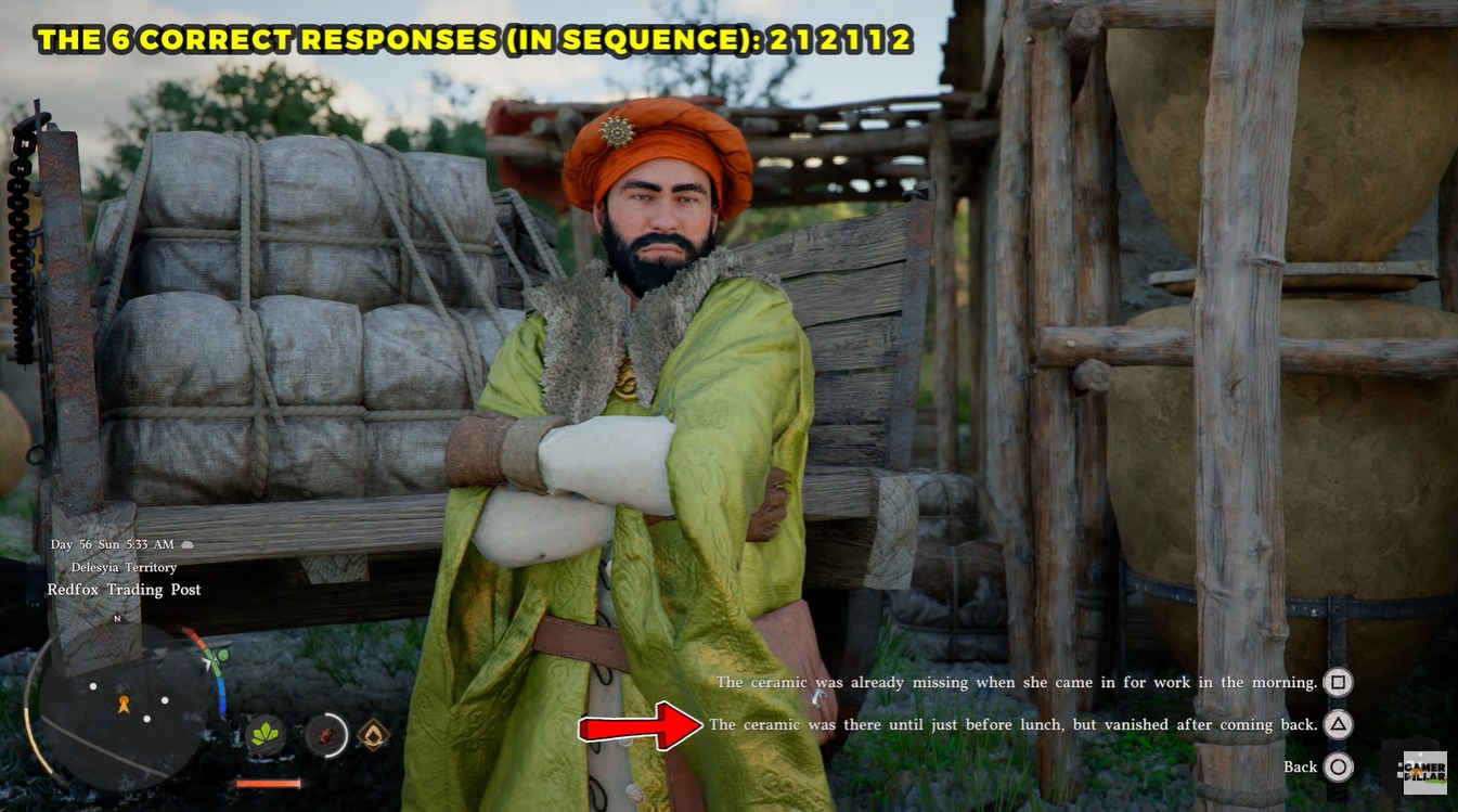 You step into one of the more grounded and investigative quests in Crimson Desert with Broken Silence, where instead of combat, your success depends on logic, observation, and accurate dialogue choices. Set in the eastern region of Delesyia, this quest places you in the role of a problem-solver trying to uncover the truth behind a missing ceramic shipment. The challenge lies not just in speaking to NPCs, but in connecting their statements and identifying inconsistencies.
