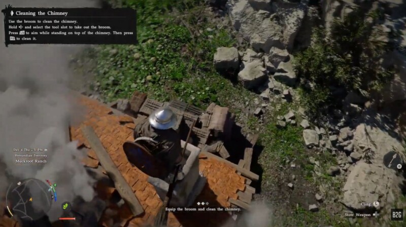 You’ll find this quest in Hernand, specifically in the Muckroot Ranch area. As you approach one of the houses, you’ll notice a couple arguing about cleaning their chimney, which serves as your entry point into the quest.