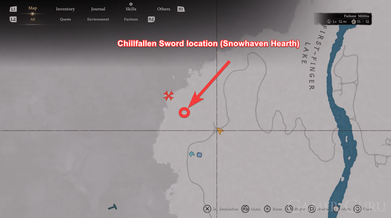 The Chillfallen Sword is located deep within the icy region of Snowhaven Hearth in Skoghorn, part of the Argent Peaks in Pailune. This area is known for its rugged cliffs and snow-covered terrain, so navigation can feel tricky if you’re not familiar with vertical exploration.