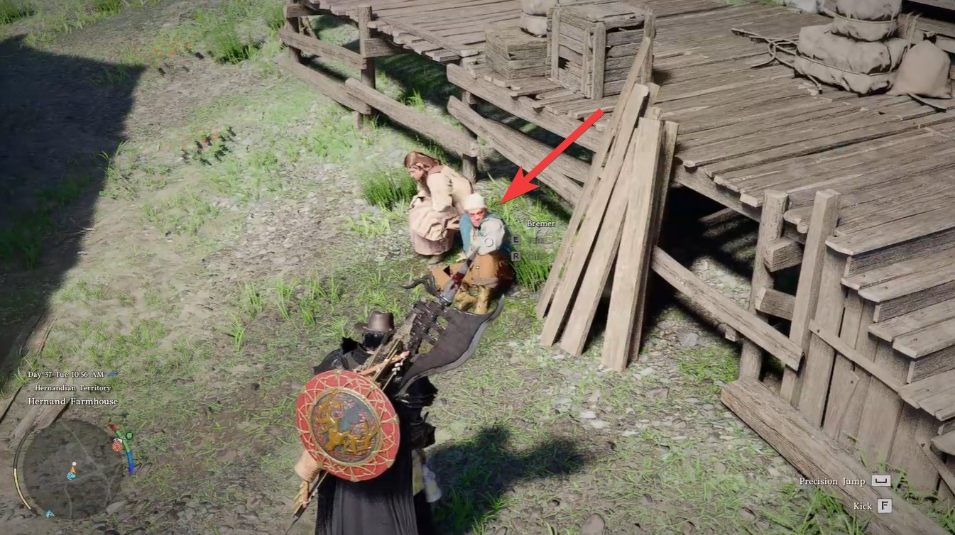 Bremer is primarily found at Muckroot Ranch, but if he’s missing, you should check the nearby tavern entrance, especially during nighttime hours. His schedule shifts slightly, so patience and timing matter when tracking him down.