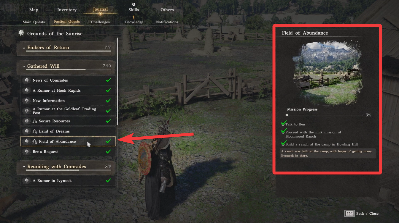 - You must complete the “Field of Abundance” quest to unlock the ranch system.