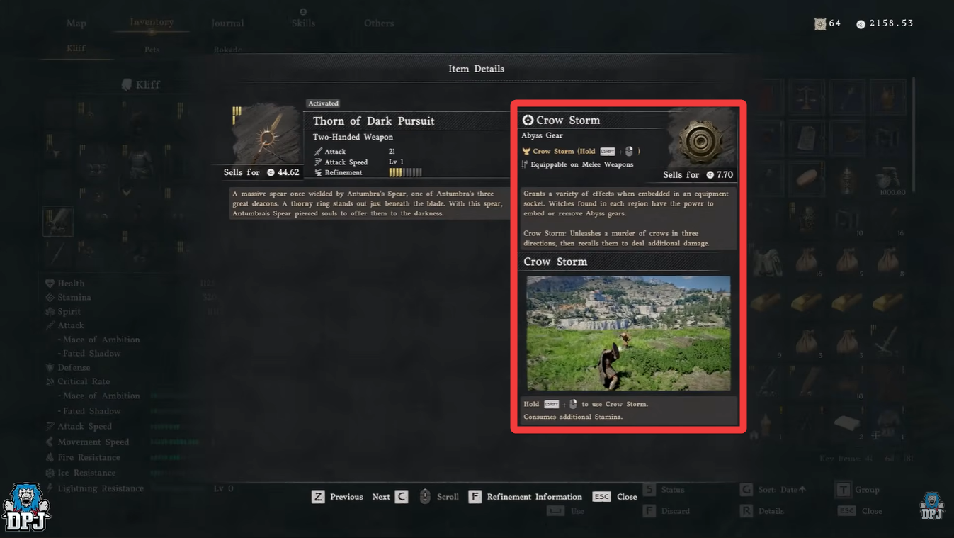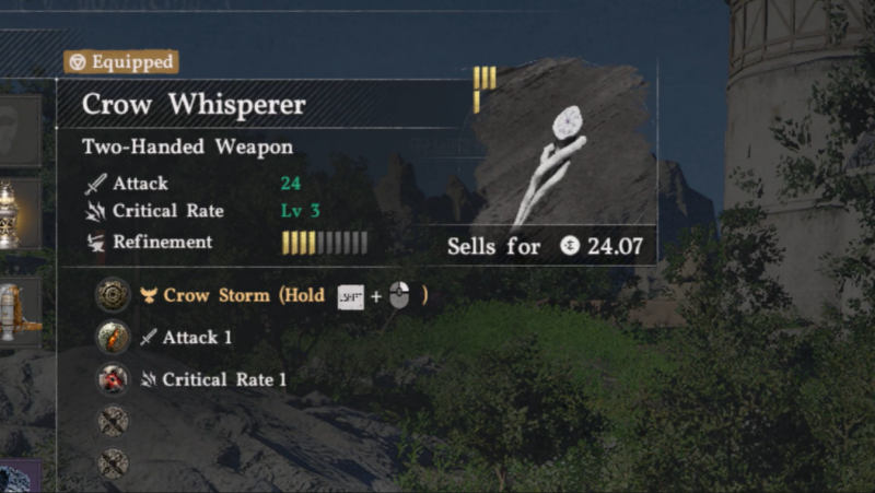 The Crow Whisperer is the weapon that comes bundled with Crow Storm, and it plays a key role in maximizing the skill’s effectiveness. It is classified as a two-handed weapon and scales with attack and critical rate improvements.