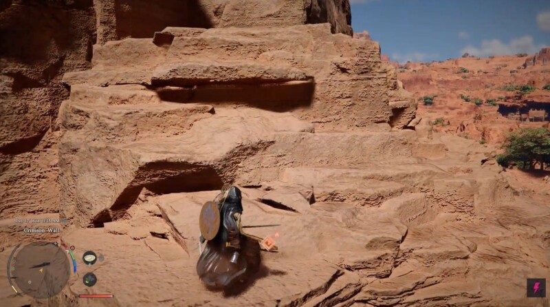 Travel to Drywind Valley, specifically the far eastern side near Crimson Wall, using your horse for faster navigation. The terrain is uneven, so mounted travel saves time.