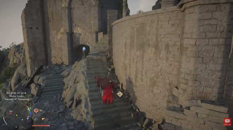 Enter the Sanctum of Veneration and proceed inside until you find a staircase leading upward. This will take you to the upper level where the secret is located.