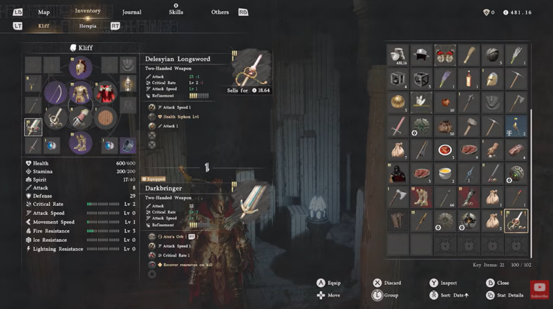 - Delesyian Longsword is a two-handed weapon with built-in healing via Life Transference.