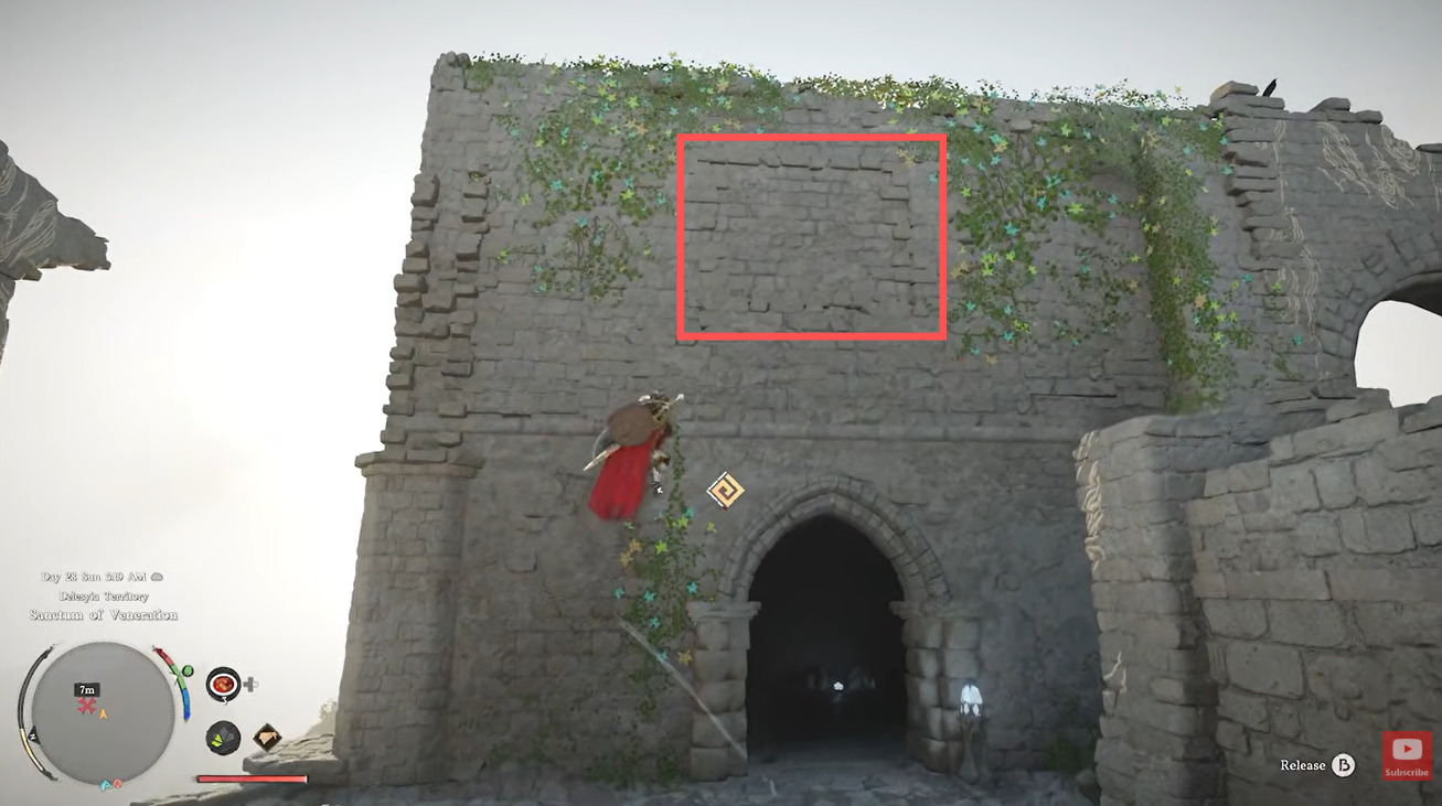 Inside the Sanctum, you’ll need to locate an upper-level section with a vine-covered wall that conceals the entrance. This is not immediately obvious, so careful observation is key.