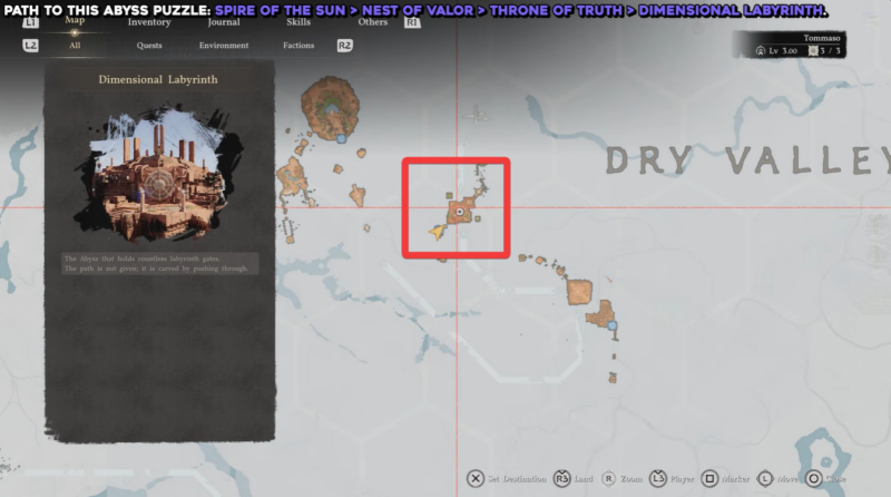 The Dimensional Labyrinth Abyss is located deep within the late-stage progression path of Crimson Desert, and you will reach it by following a specific sequence of regions. You need to progress through Spire of the Sun, then move into Nest of Valor, continue toward Throne of Truth, and finally access the Dimensional Labyrinth area, where the Abyss puzzle is situated.