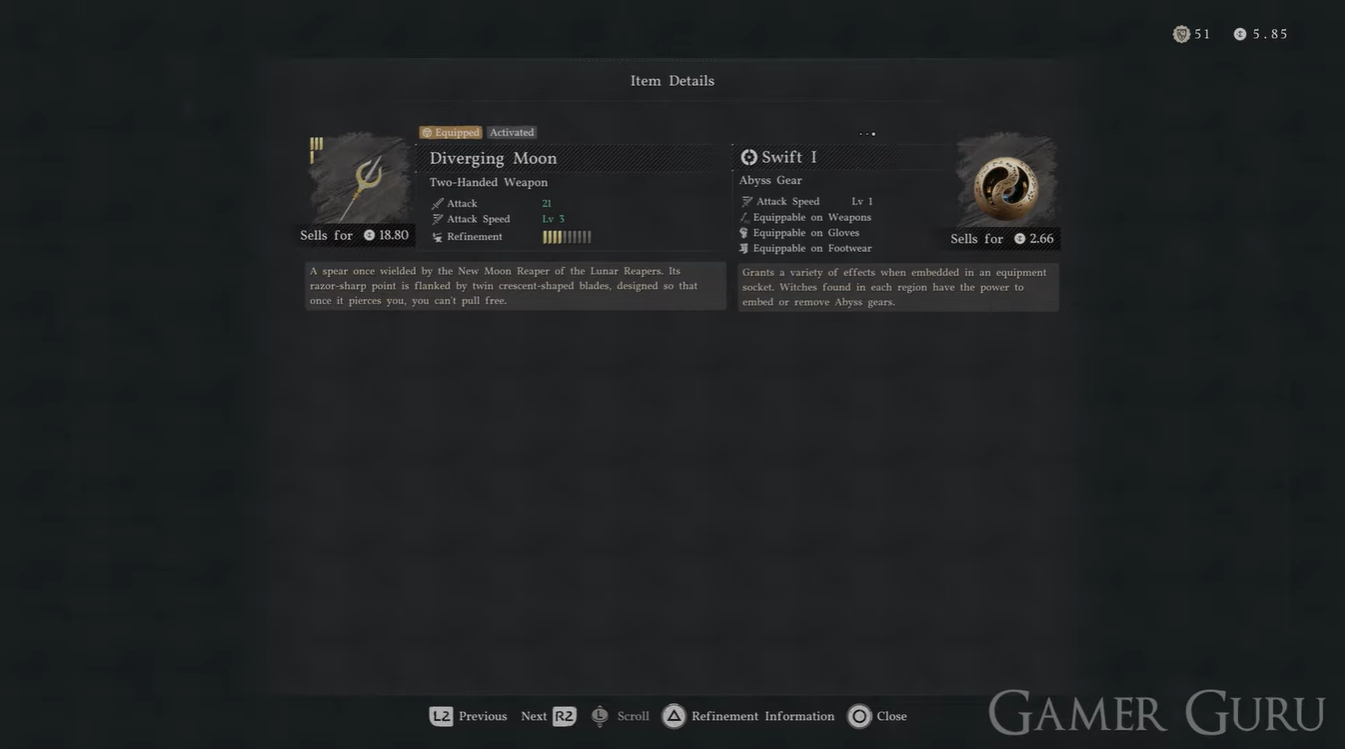 Diverging Moon Abyss gear effects and how they enhance the weapon