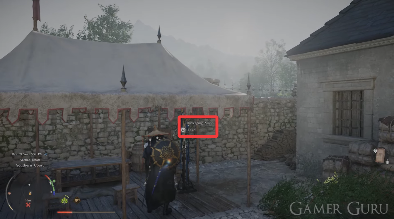 You can obtain the Diverging Moon weapon in the Southern Court of Demeniss without needing to complete any complex questline. As you approach the court area, you do not need to enter the main structure, which makes this weapon particularly easy to acquire compared to other hidden gear.