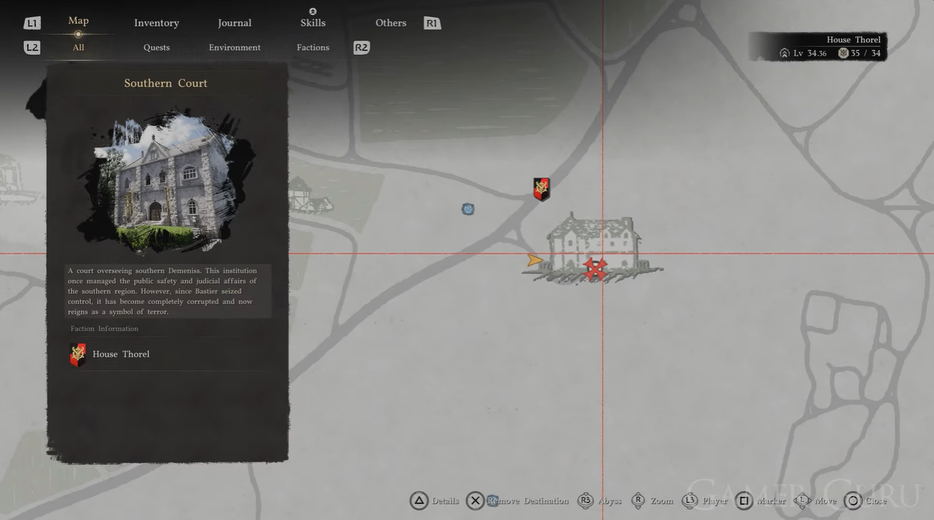 Travel to the Demeniss region and locate the Southern Court area on your map. Ensure you are prepared for minor encounters along the way, though no major boss fight is required.