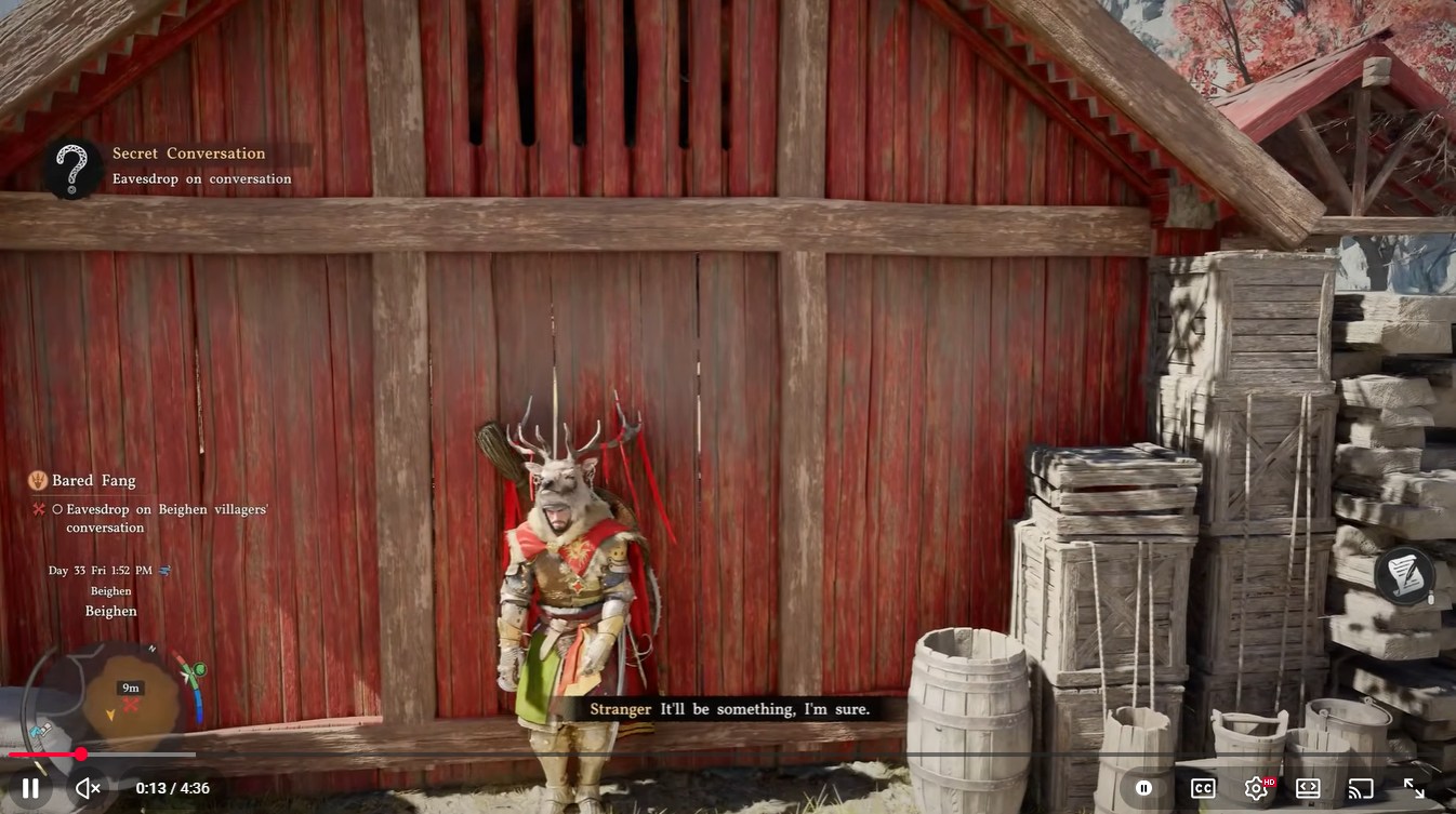 One player workaround even highlights needing to move behind a barn to trigger the eavesdrop interaction properly, showing how unintuitive the placement can be.