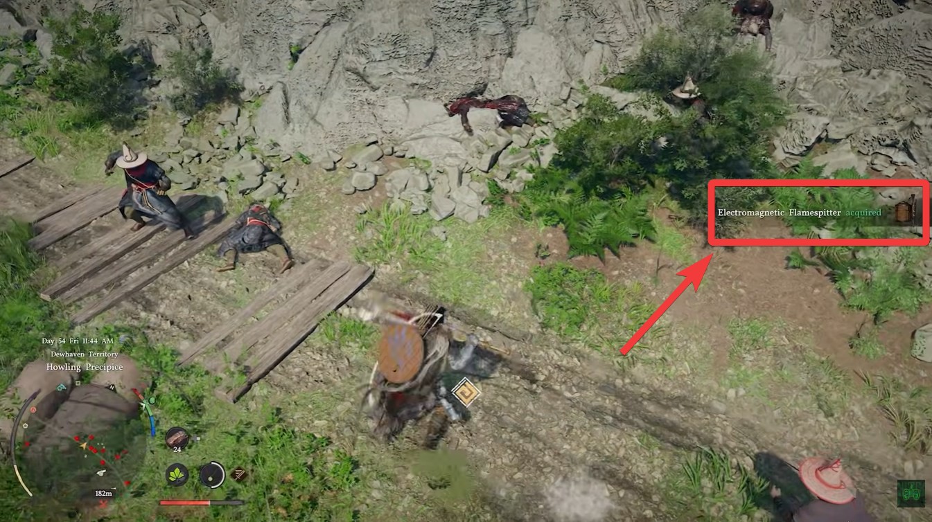 The Electromagnetic Flamespitter is not tied to a guaranteed drop or quest reward. Instead, it comes from defeating specific enemies within the fort. The bandits carrying this weapon can occasionally drop it when defeated, which means farming is essential.
