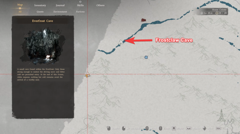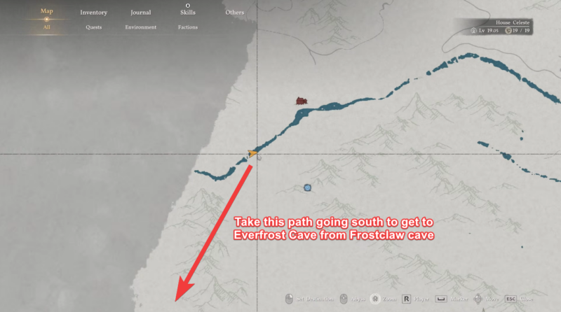 The journey to Everfrost Cave is less about combat and more about smart navigation through harsh terrain. You begin at Frostclaw Cave, which acts as your primary landmark in the region. From there, heading directly south might seem straightforward, but the mountainous barriers will force you to adjust your route.