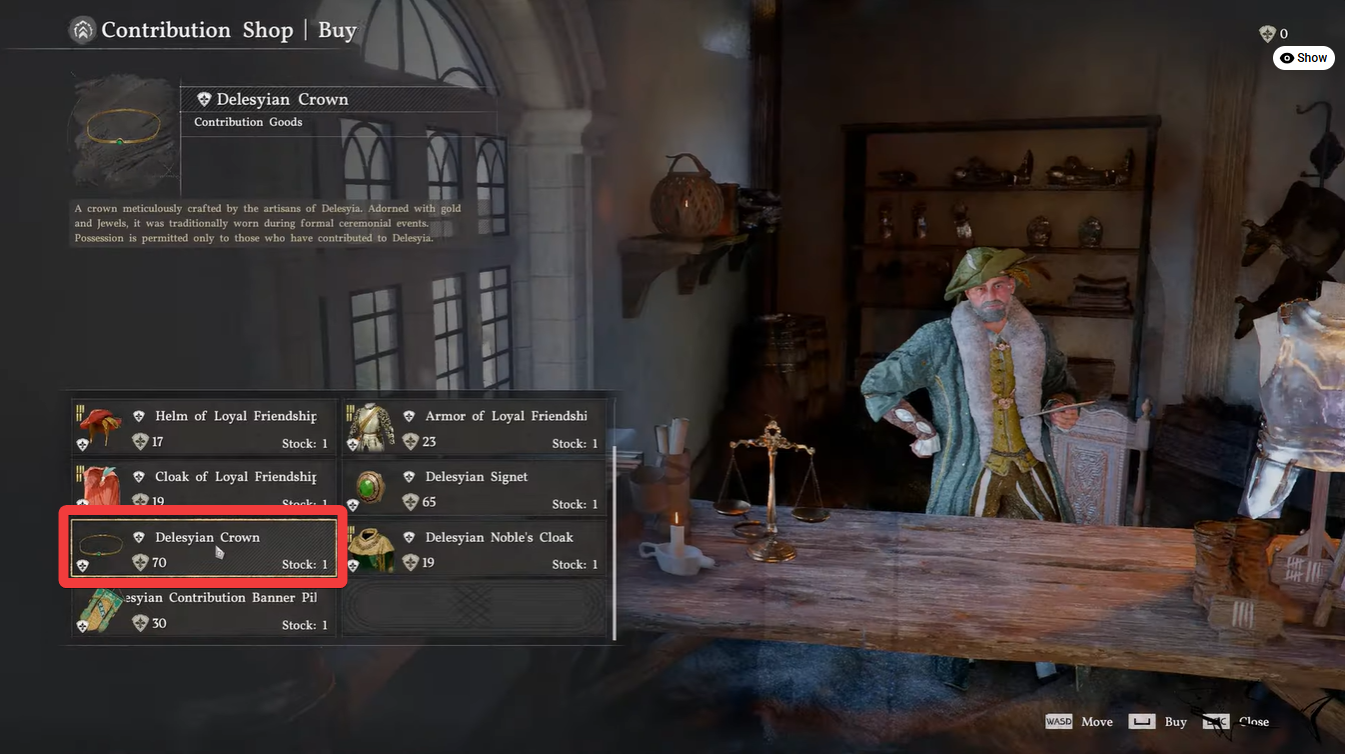 Purchase the Contribution Crown specific to Deleysia. This item acts as a key to unlock hidden inventory in certain vendors.