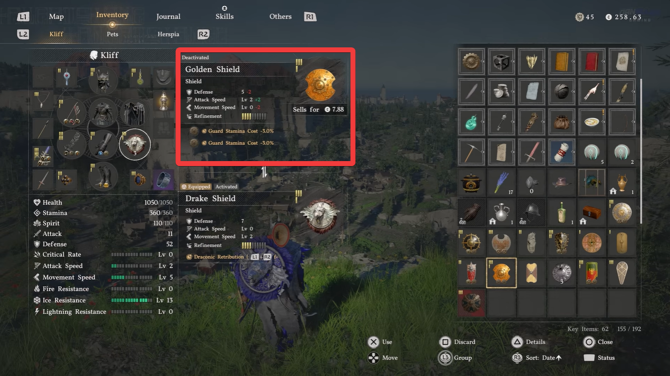 When you equip the Golden Shield, you’ll immediately notice improved stamina efficiency during defensive play. This is particularly useful against enemies with rapid attack patterns or bosses that require sustained blocking.