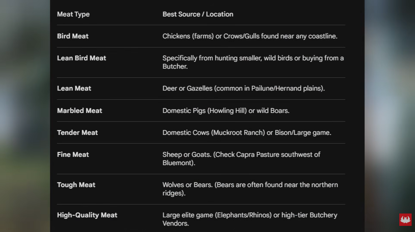The Animal Meat Challenge revolves around collecting all eight meat-related knowledge entries in the game. This system encourages you to engage with both vendors and wildlife across different regions.