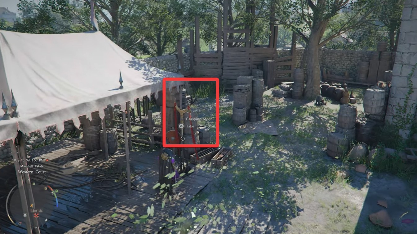 The Western Court in Demeniss is the place where you get the Grasping Moon weapon, making it a compact but high-risk area to explore. You will find a tent within this region that contains the Grasping Moon weapon, but the true challenge lies in facing the boss tied to its full potential.